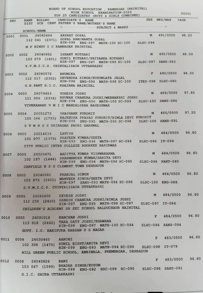 #रामनगर के #अक्षत_गोपाल ने #उत्तराखंड_बोर्ड में 10वीं क्लास में 98.20% के साथ टॉप किया ! चर्चाओं में रहने वाले MPHIC ने इस बार नाम रोशन चर्चा में ला दिया है अक्षत गोपाल ने ! बिना ट्यूशन के घर में पढ़ाई करके टॉप किया !साथ में टॉप छात्रों की सूची !#हाईस्कूल_परिणामकुल विद्यार्थी 92.10%, छात्र – 88.03%, छात्राएं – 96.07% #इंटरमीडिएट_परिणाम कुल विद्यार्थी– 85.11% छात्र – 81.93%छात्राएं – 88.09%#इंटरमीडिएट में गीतिका पंत (बागेश्वर) और सुशीला मेहंदीरेट्टा (काशीपुर) ने 98% अंक लेकर संयुक्त रूप से टॉप किया।#UttarakhandBoardResult #UKBoardResult2026 #रामनगर #उत्तराखंड #AtomBombNews #BoardResult #BreakingNews#uttarakhandBoard #news